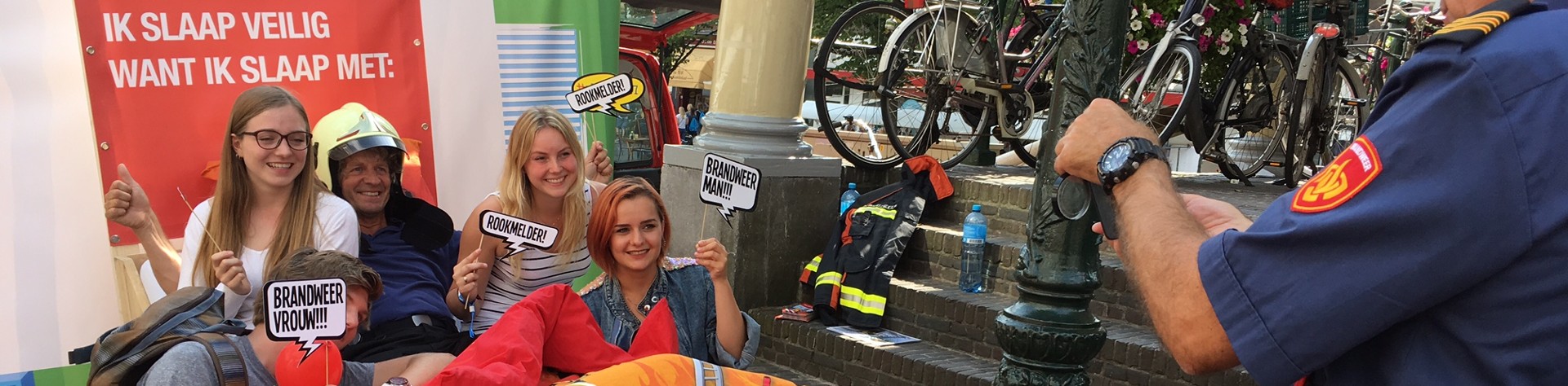In de “In bed met de brandweer”- photobooth maken studenten een foto in bed met een brandweerman of -vrouw en ze laten hun e-mailadres achter. Daarna volgen 4 contactmomenten per e-mail.